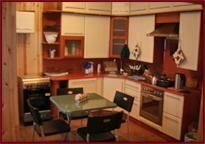 Дома обустроены кухонными зонами, где есть все условия для приготовления пищи. Также на улице находится летняя беседка, со встроенным мангалом под навесом, что даст гостям возможность готовить еду на костре в любую погоду.