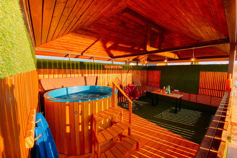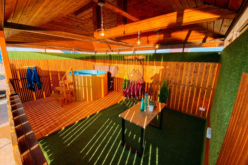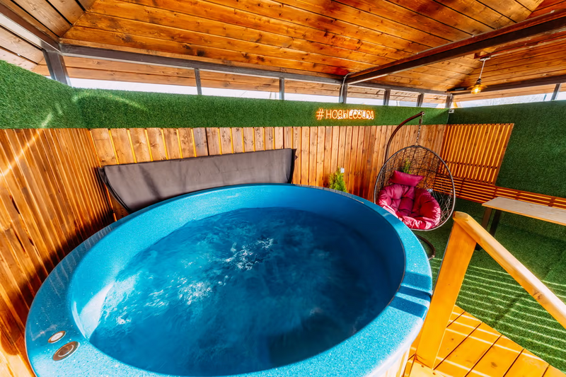 Испытайте на себе непередаваемые ощущения от купания в банном чане на открытом воздухе. 38–42 градуса температура воды в чане.