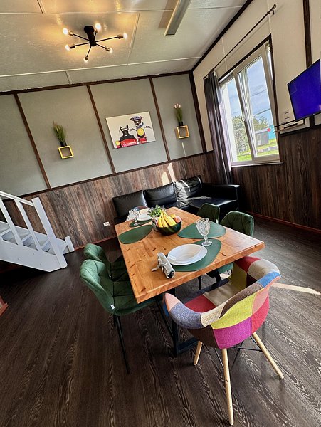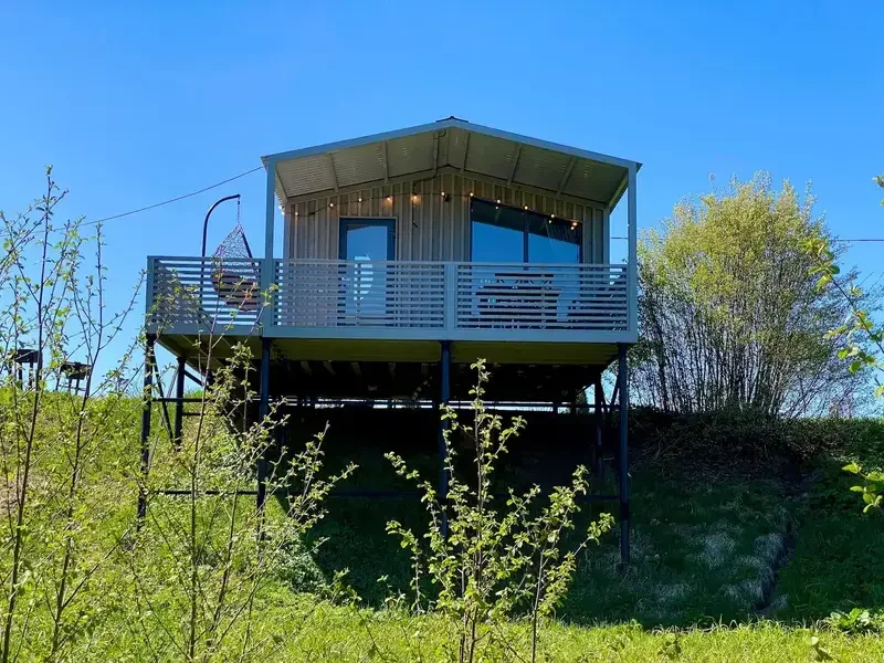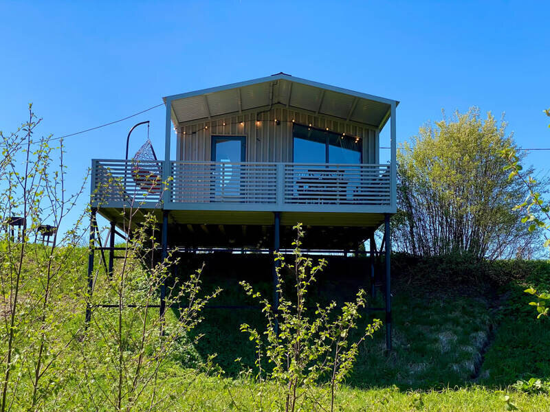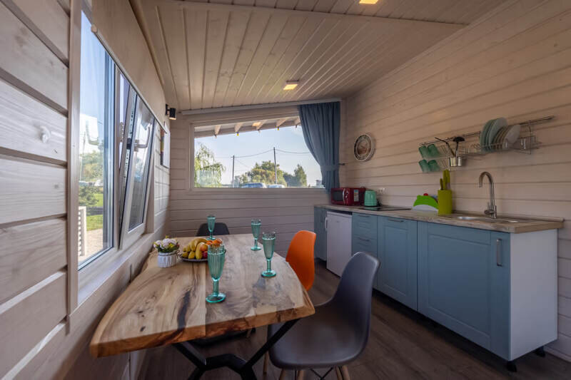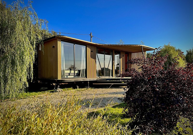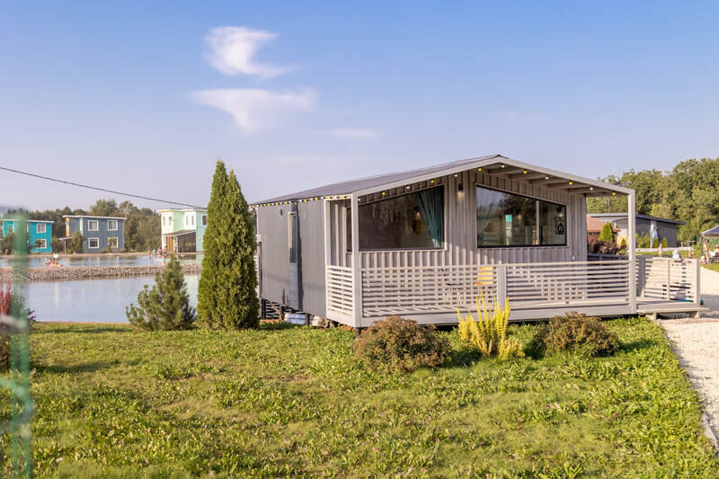 Уютный и современный дом с панорамным видом, большой террасой с подвесным креслом и красивым видом. Вместимостью до 3 человек. Находится в 5 метрах от берега.
