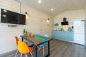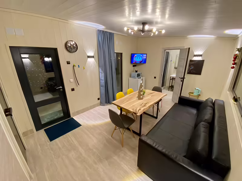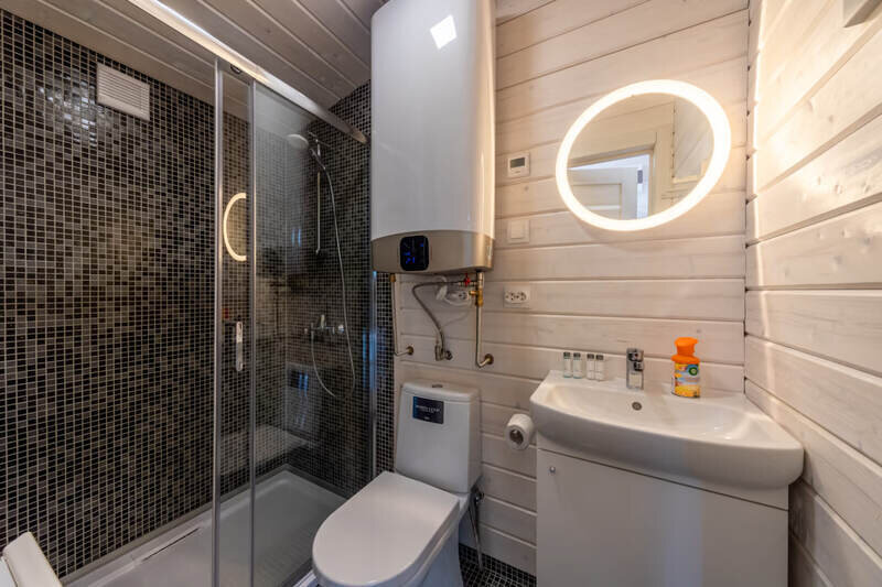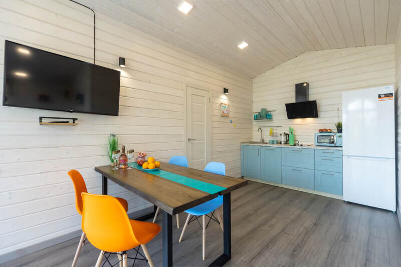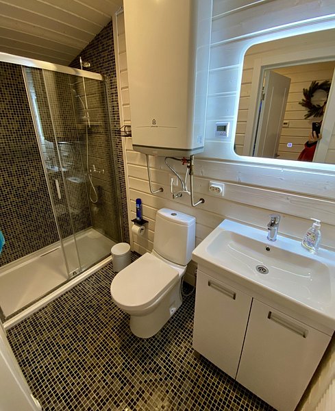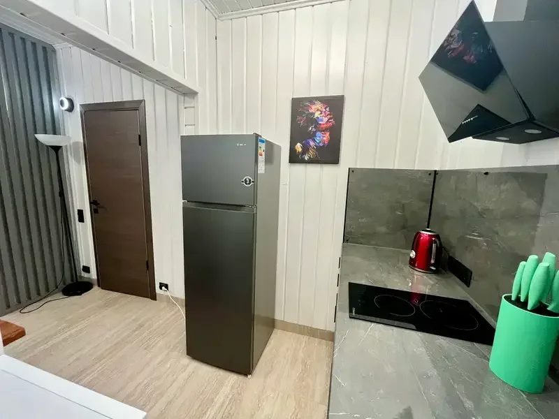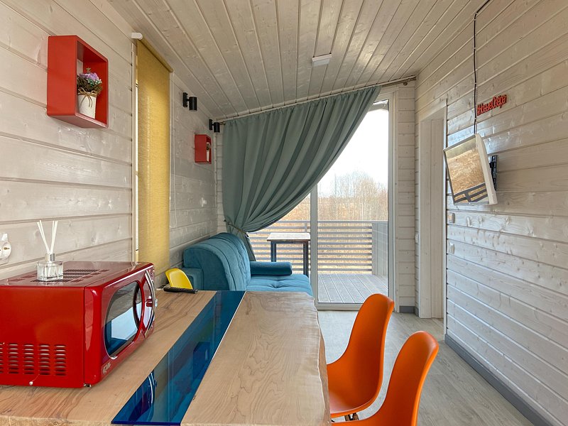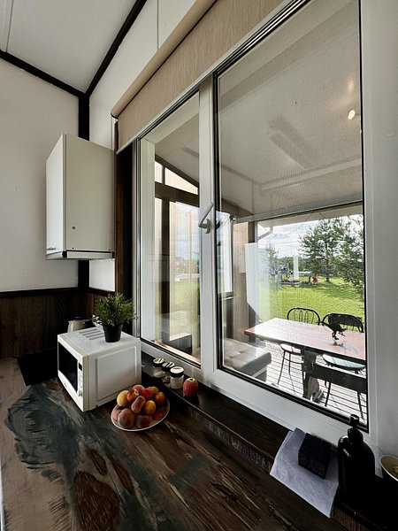Во всем Лодже теплые полы и кондиционер. Мини кухонная зона, оборудована необходимой техникой: микроволновая печь, холодильник, чайник и посудой, смарт TV с Алисой.