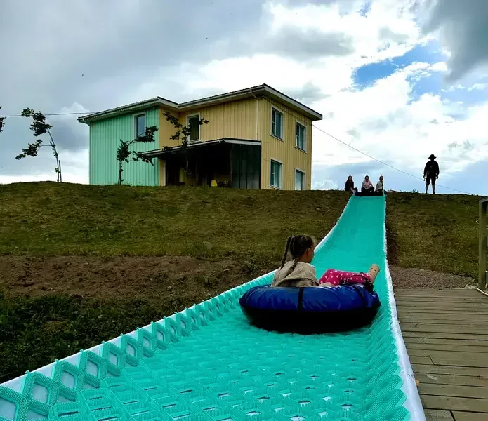 - С тюбингом и ватрушками