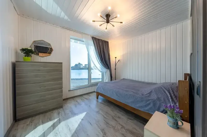 Уютный и современный дом с красивым видом на воду. Коттедж находится прямо на берегу, 5 метров до воды. Во всех помещениях теплые полы. Прекрасный вариант для проживания с детьми и семейных пар.