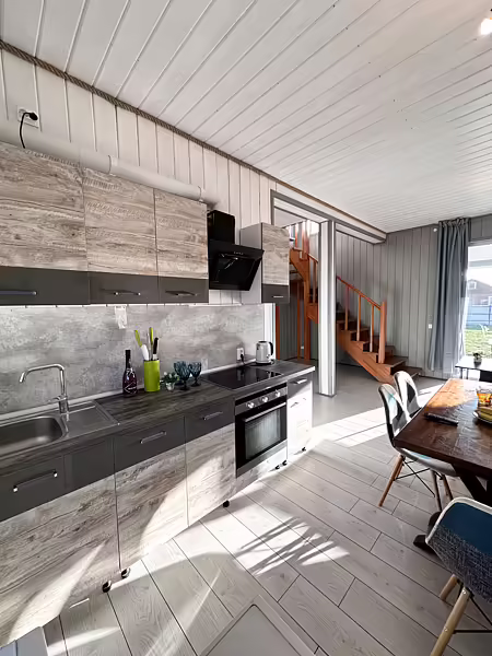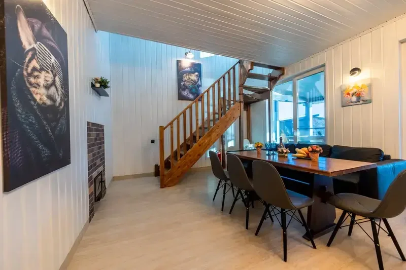 Современный дом с панорамным окном и видом на воду, очень теплый и уютный. Во всех помещениях теплые полы. Безлимитный WI-FI, прекрасный вариант для семьи с детьми или семейной пары. Дом находится прямо на берегу, 1 метр до воды.