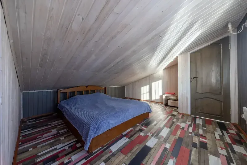 Просторный коттедж с прекрасным видом, большой террасой и собственной русской баней на дровах (входит в стоимость 3 часа в день). Находится в 5 метрах от берега.