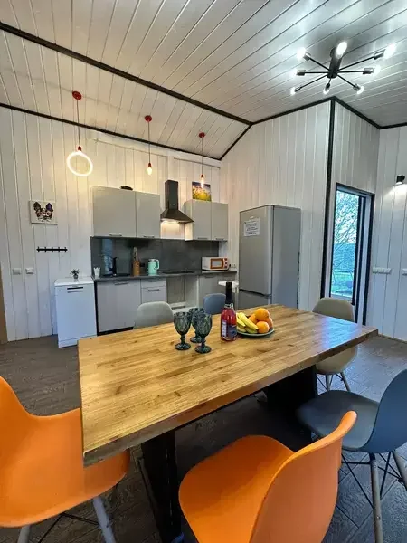 Отдых с друзьямиДостоинстваПрекрасный отдых в унылую погоду!! Забронировали коттедж New 2+1 на одну ночь, так как на следующий день этот домик был уже занят, а уезжать не хотелось .И милая администратор Ирина нас переселила в другой , за что ей большое спасибо. Уютная территория, классная банька на дровах, тихая , спокойная обстановка! Все вопросы решаются моментально, даже по смс!! Супер всё 👌Советую от души💪💃