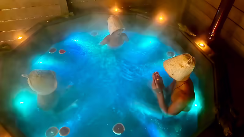 Читать полностьюИспытайте на себе непередаваемые ощущения от купания в банном чане на открытом воздухе. 38–42 градуса температура воды в чане.