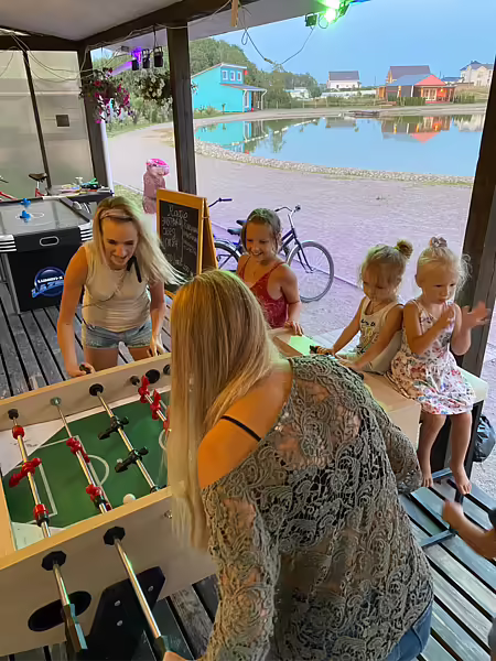 На территории комплекса максимум развлечений для взрослых и детей. Батуты, аэрохоккей, настольный футбол и теннис, пляж, прокат квадроциклов, караоке, настольные и виртуальные игры. Русская баня на дровах, термальный банный чан, горячая купель.