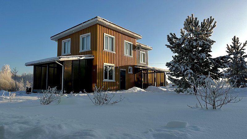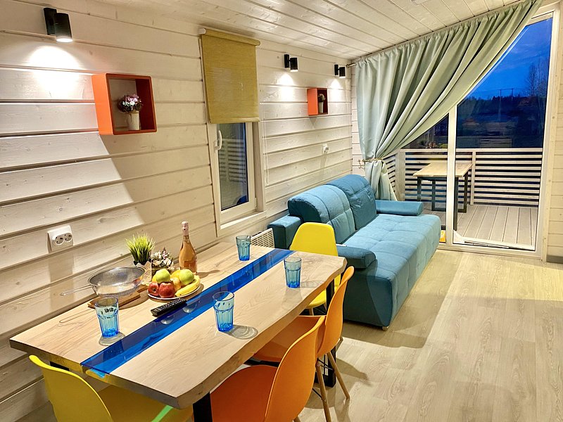 Уютный и теплый с панорамным окном и большой террасой с подвесным креслом. Дом находится всего в 10 метрах от берега. Прекрасно подойдет для семьи с детьми или для пары. Во всем доме теплые полы.