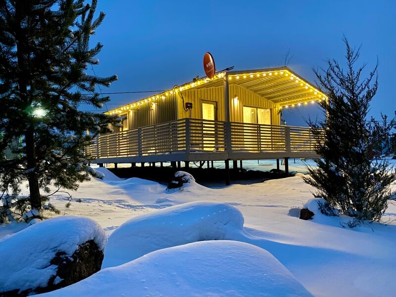Теплый и уютный коттедж с панорамным видом, большой террасой, подвесным креслом и красивым видом. Вместимостью до 6 человек. Находится на уединенном участке в 100 метрах от берега.