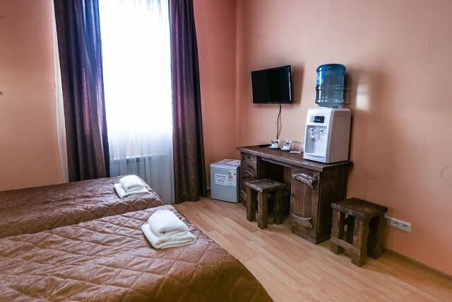 В номере имеется все необходимое (телевизор, шкаф, холодильник, туалет, душ, туалетные принадлежности (мыло, шампунь, зубная щетка и паста, гель для душа) фен, полотенце, тапочки, бесплатный интернет Wi-Fi.) По запросу утюг, гладильная доска, заказ еды и напитков в номер.
