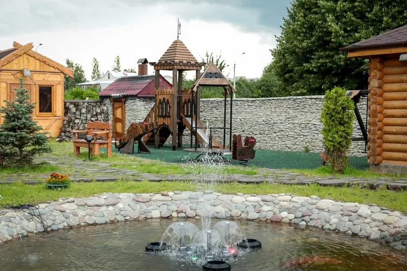 11 домиков образуют своеобразный городок с причудливыми тропинками, извилистым прудом. Живописную картину дополняет роскошный фонтан, расположенный в самом «сердце» городка! Для самых маленьких гостей есть чудесная детская площадка!