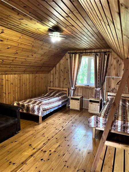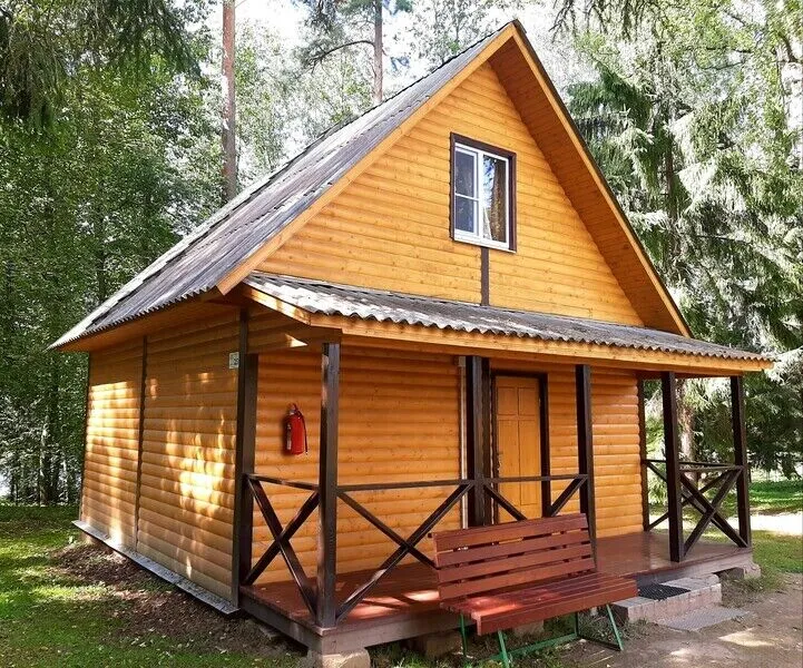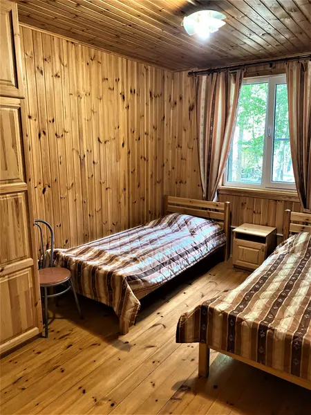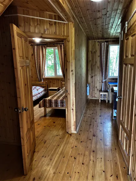Коттедж, площадью 50 кв.м., рассчитан на четырех человек ( + 2 дополнительных места*) Первый этаж: спальная комната - две кровати, кухня - холодильник, плита, микроволновая печь, посуда, чайник. Ванная комната: финская сауна, душ, санузел. Второй этаж: две кровати, диван, ТВ. Постельное белье и полотенце предоставляются.В гостиничном номере