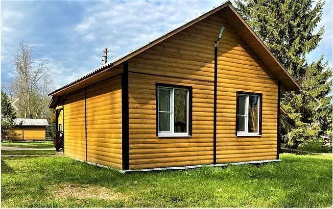 Новый летний домик из профилированного бруса на 2 человек. 1/2 домика с небольшой террасой и отдельным входом, две кровати, холодильник, электрический чайник, TV, санузел. Общая кухня и душевые в отдельно стоящем здании. Открыт на сезон - с 1 мая по 30 сентября. До озера 50 метров. На территории много беседок.В гостиничном номере
