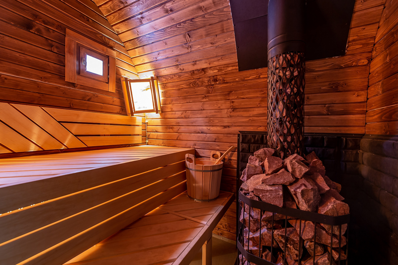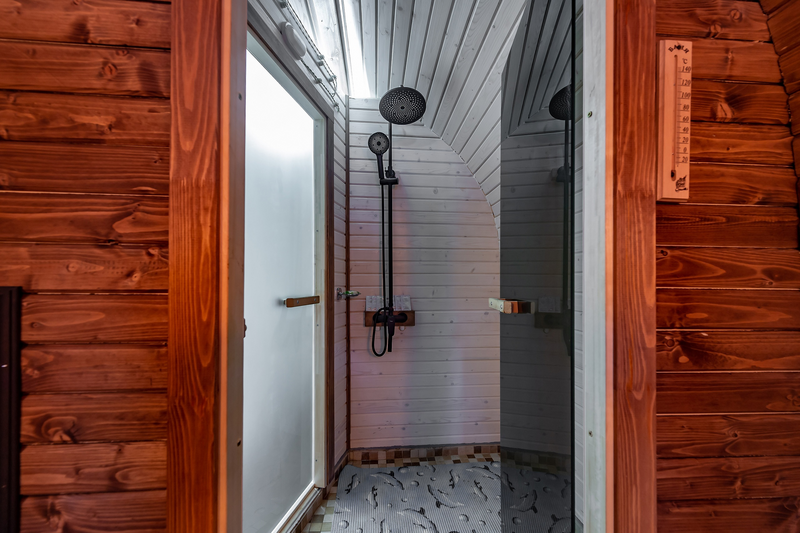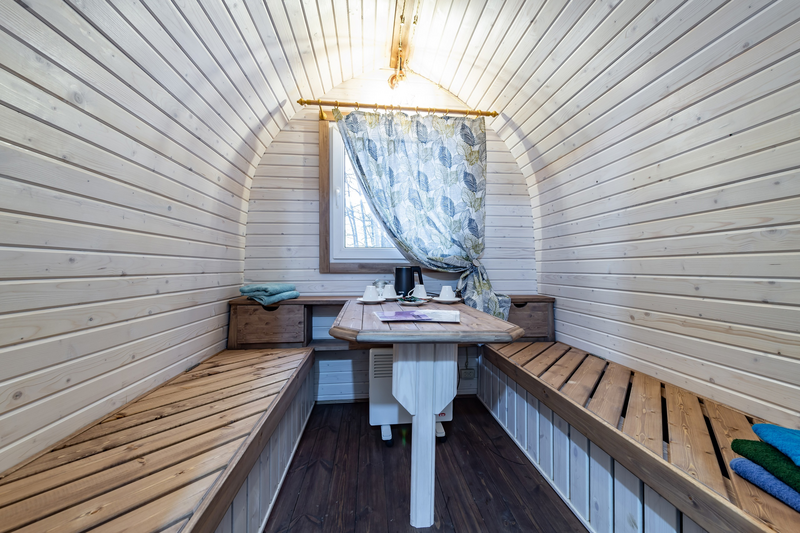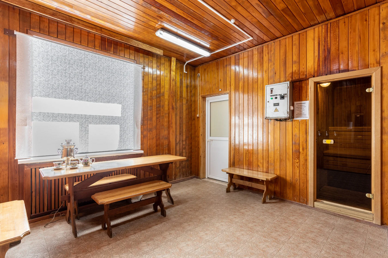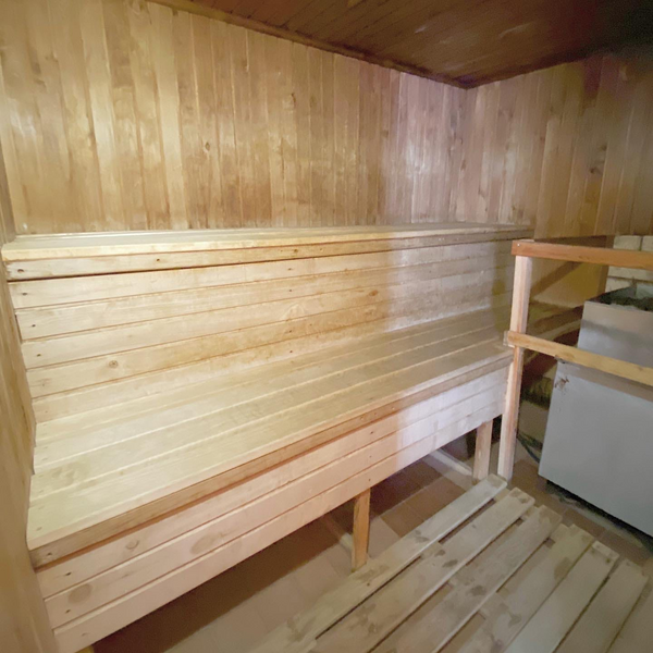 Индивидуальная сауна доступна для отдыхающих и гостей пансионата. комфортное размещение для 6-ти гостей. Отдельный душ и туалет, а также стол, скамейки. С личным выходом к бассейнам.