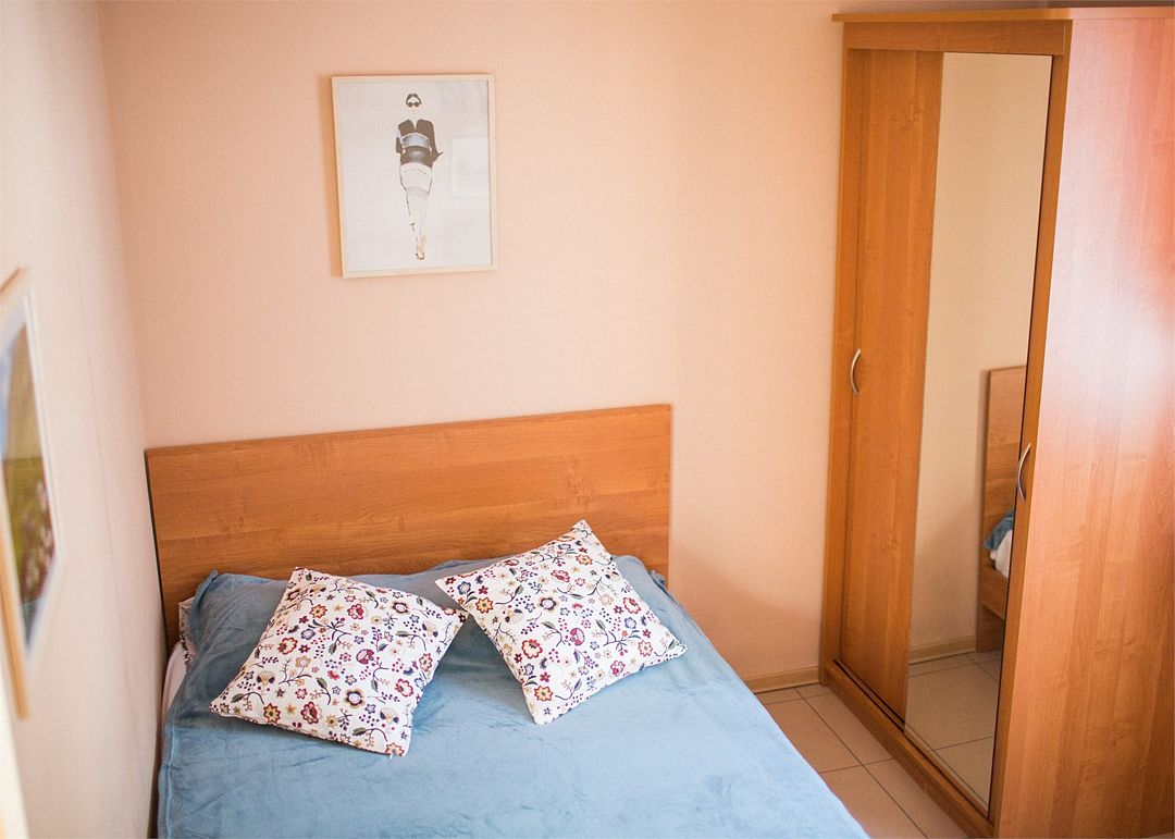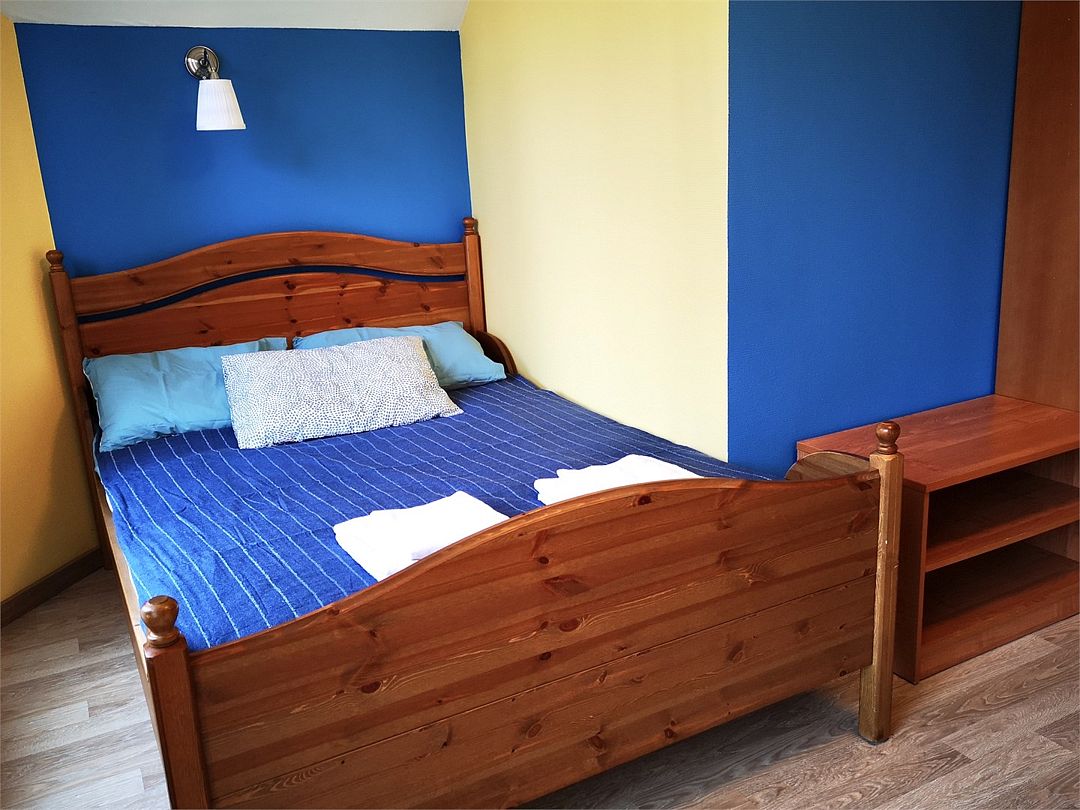 В одной комнате одна двуспальная кровать, в другой две односпальных. Имеется возможность установки дополнительного места либо детской кроватки. Ванная комната с душевой кабиной и туалетом.