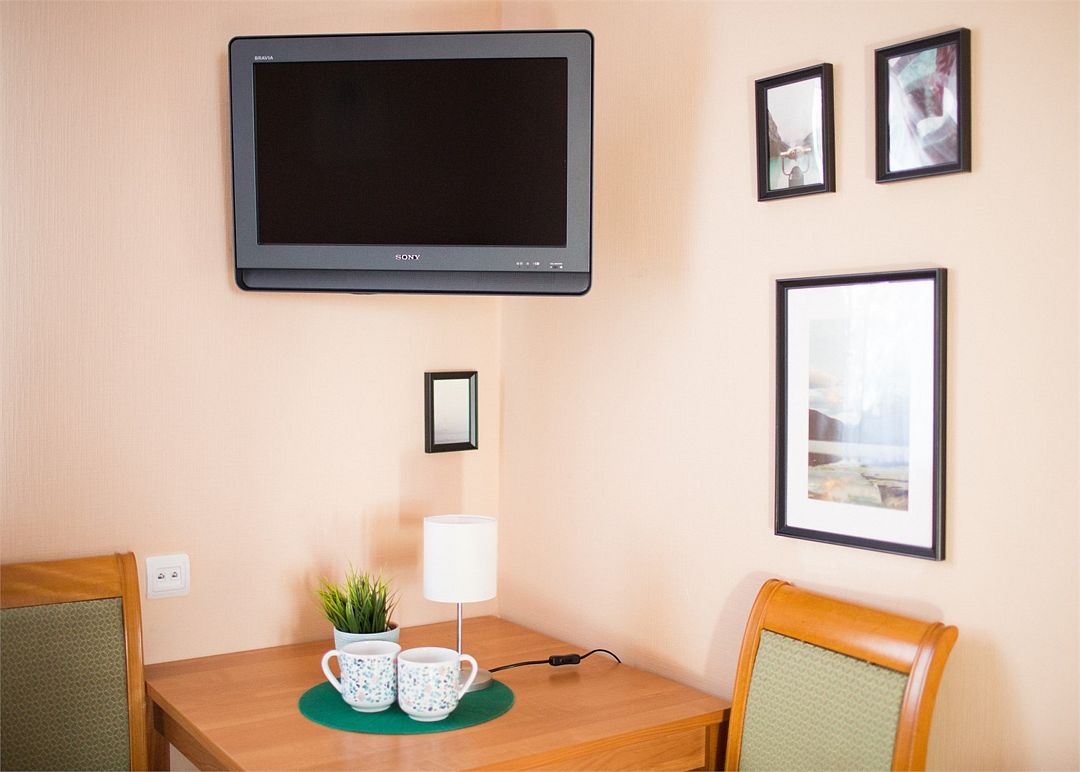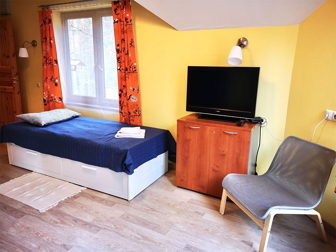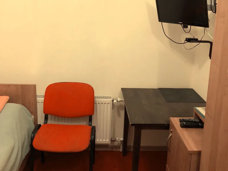 В номере односпальная кровать, тумба, ЖК-телевизор, чайник и чашка на одну персону. Ванная комната с душевой кабиной и туалетом. Нет возможности установки дополнительного места и детской кроватки.