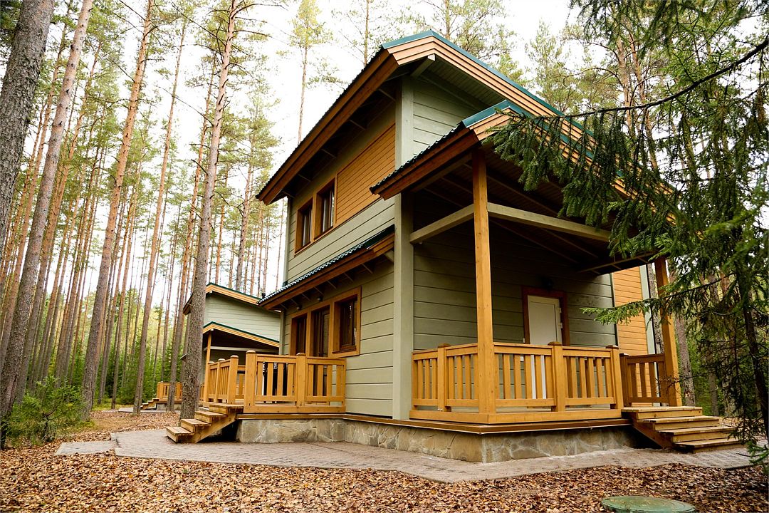 Уютные финские домики, просторные коттеджи и гостиничные номера на одного, двоих, четверых и шестерых гостей находятся на ухоженной, охраняемой территории Загородного Клуба «Орех».