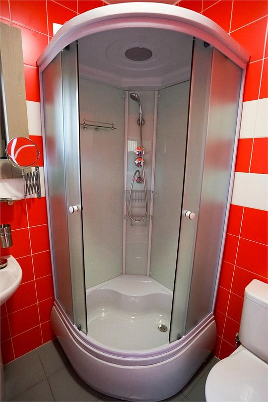 В ванной комнате бойлер, фен, душевая кабина, санузел.