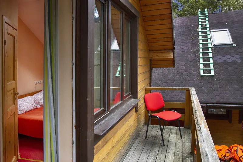 В номере двуспальная кровать, шкаф, ЖК-телевизор, чайник и чашки на две персоны. Ванная комната с душевой кабиной и туалетом. Особенность номера в большом балконе с видом на загородный клуб и озеро. Нет возможности установки дополнительного места и детской кроватки.