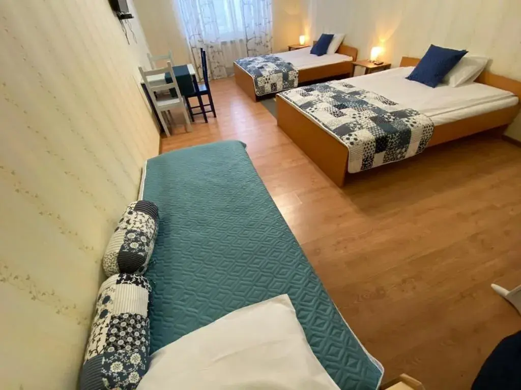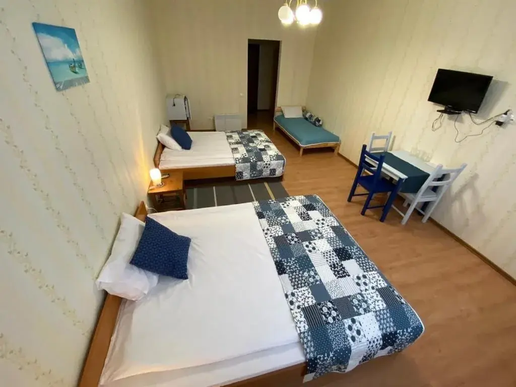 Просторный номер с двумя двуспальными кроватями. Ванная комната с душевой кабинкой, феном и бесплатными туалетными принадлежностями. Во всех номерах находится телевизор, шкаф и стол. Чай и кофе-бесплатно.