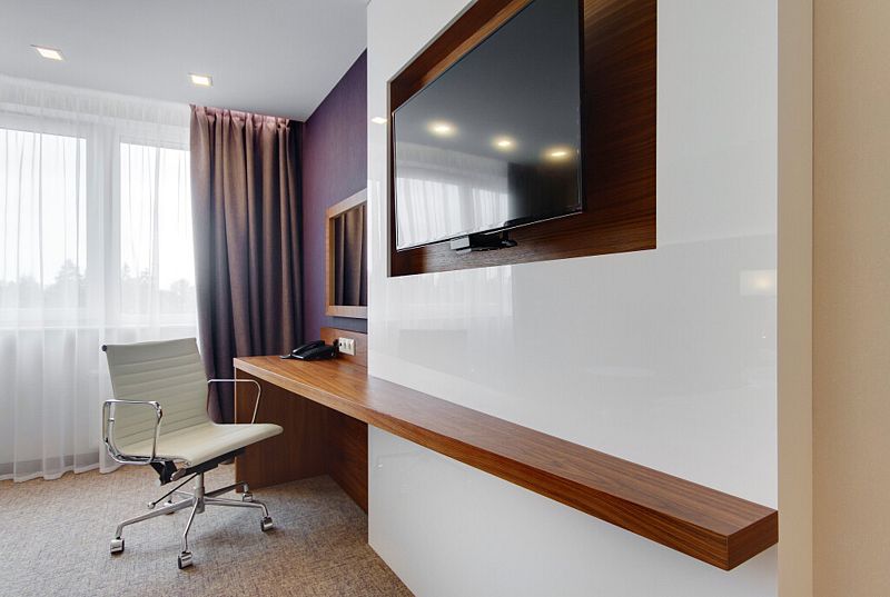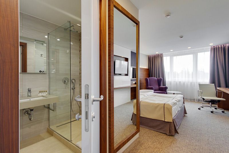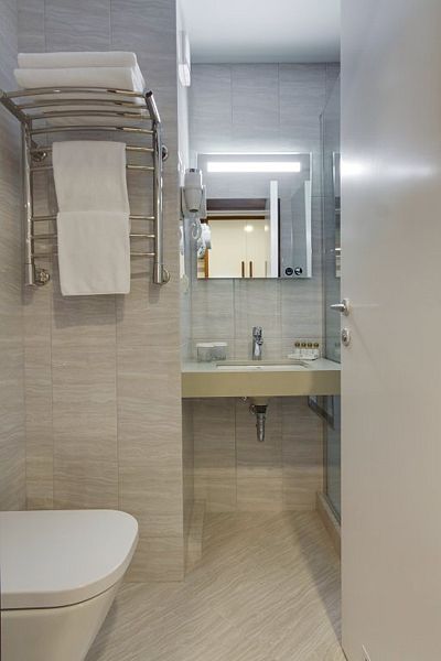 При заселении имейте ввиду, что есть угловые номера, в которых одно маленькое окно. Можно на ресепшен попросить заселить вас в номер с двумя окнами, по возможности.