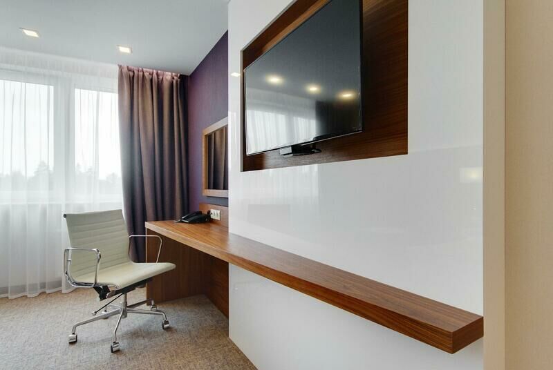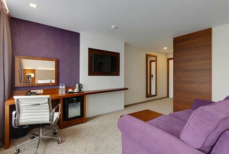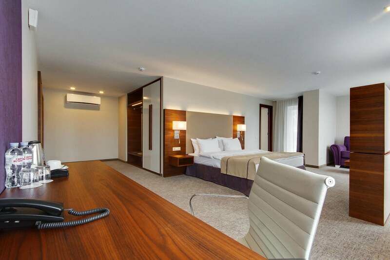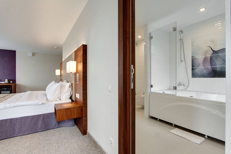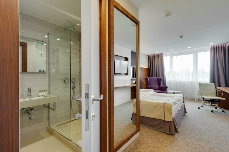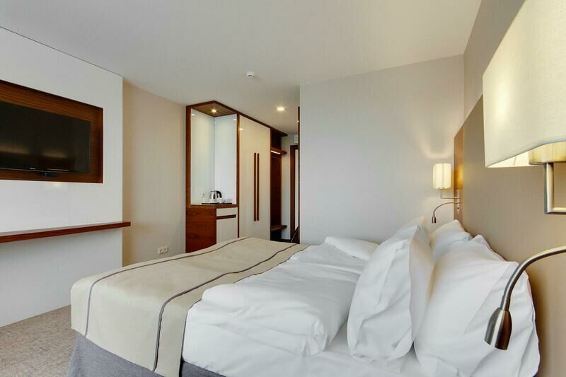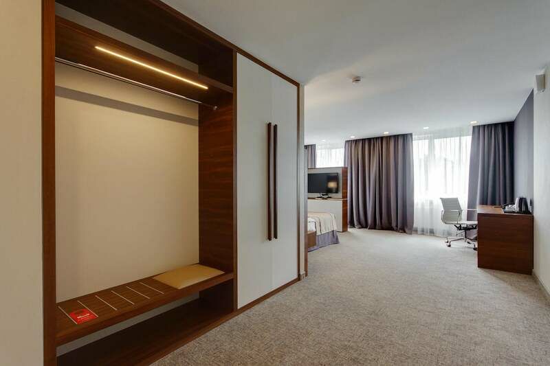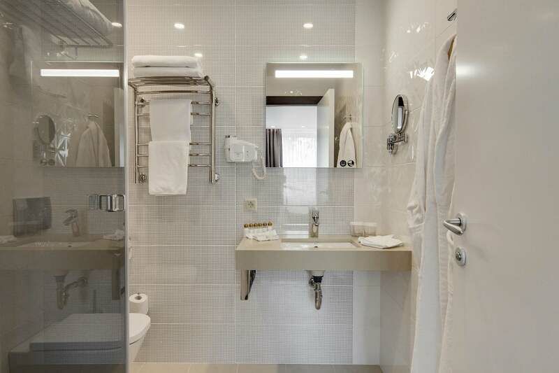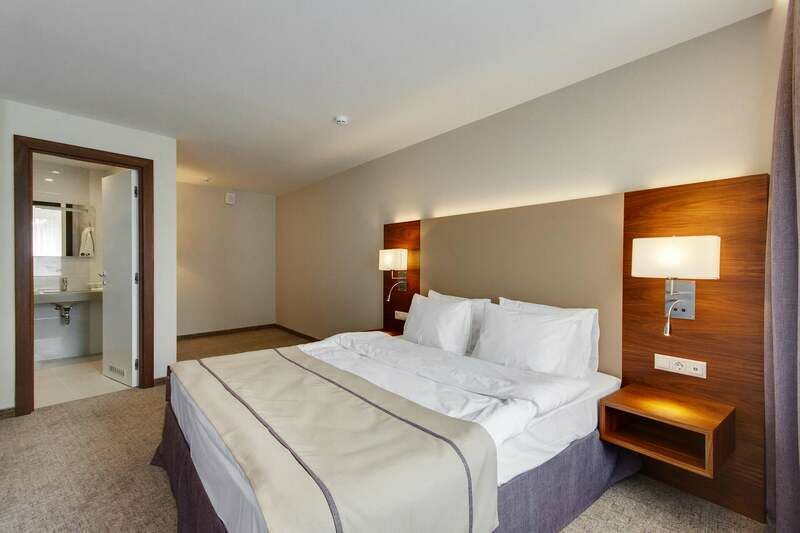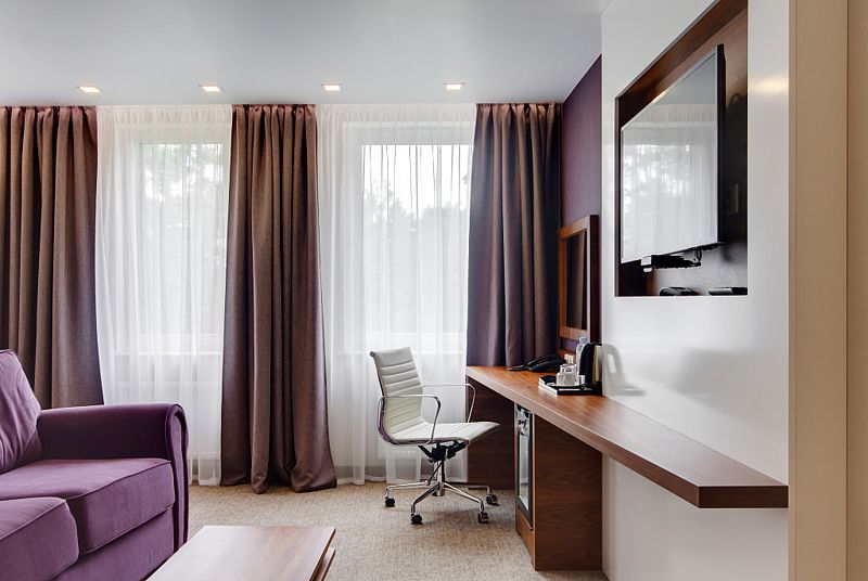 Современный четырехэтажный корпус отеля разместился в экологически чистом районе среди хвойного соснового бора. Гостей ожидают 64 номера Стандарт, Комфорт, Делюкс. В комнатах лаконичный стильный дизайн, выдержанный в светлой цветовой гамме, в оформлении интерьеров присутствуют натуральные материалы. Во всех номерах оснащены индивидуальным санузлом и укомплектованы техникой: везде есть плазменный телевизор, фен, электрочайник.