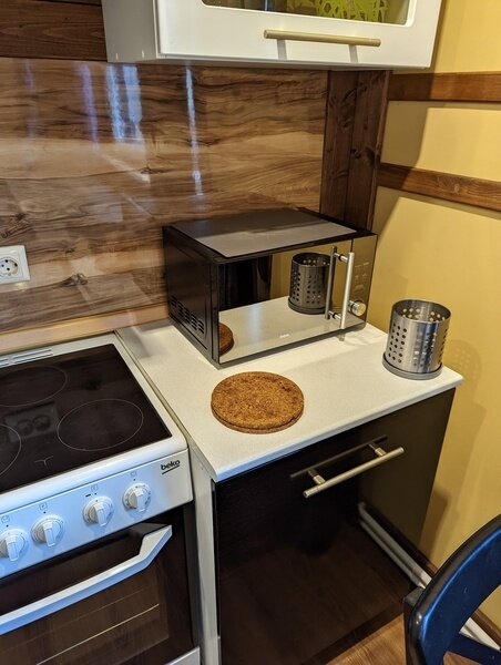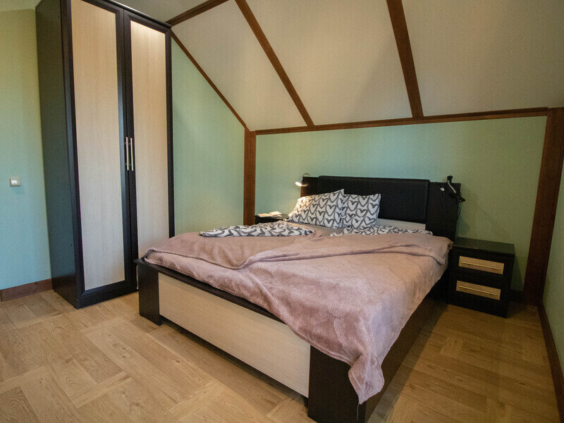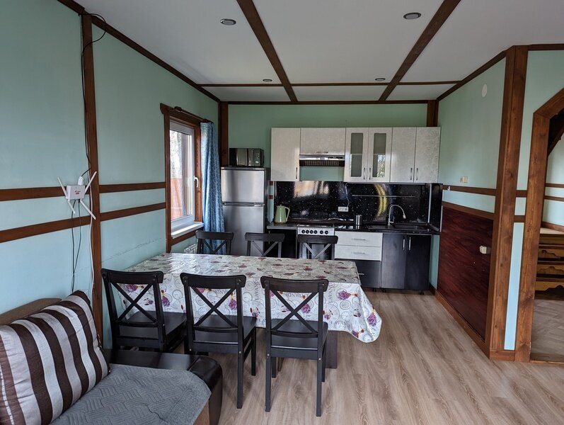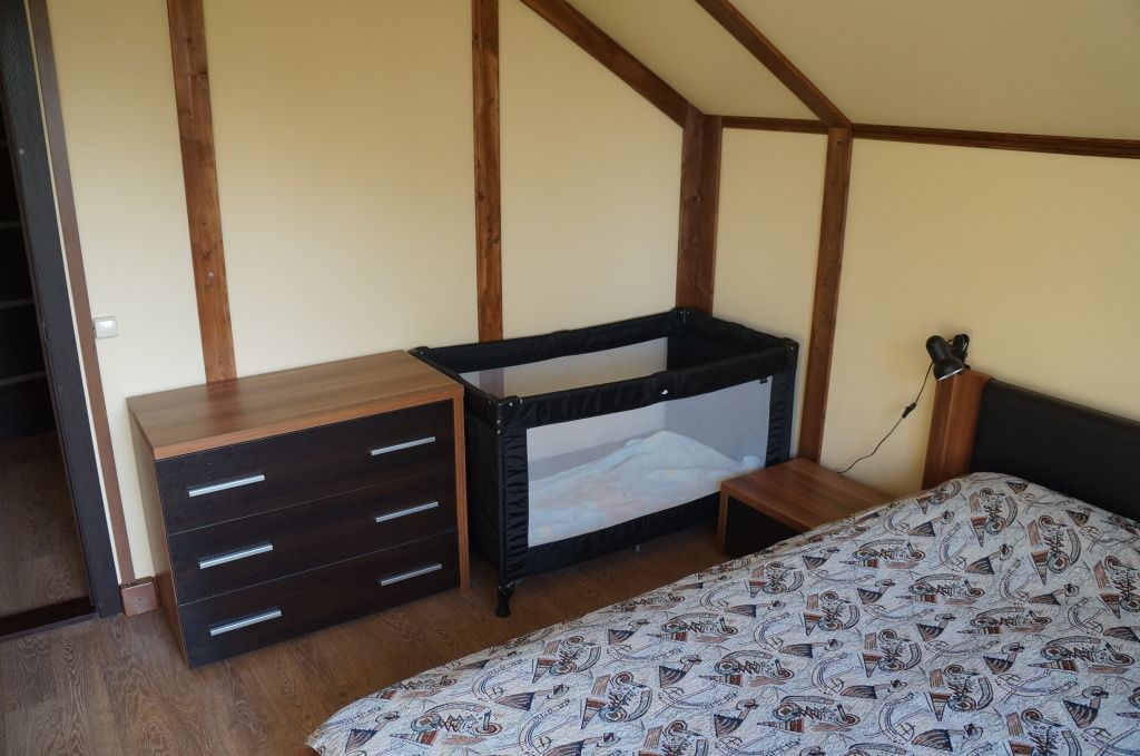 Есть дополнительная детская кроватка. Скорость интернета – 30-60 мбит/с. Возле домика – парковка для два автомобиля.