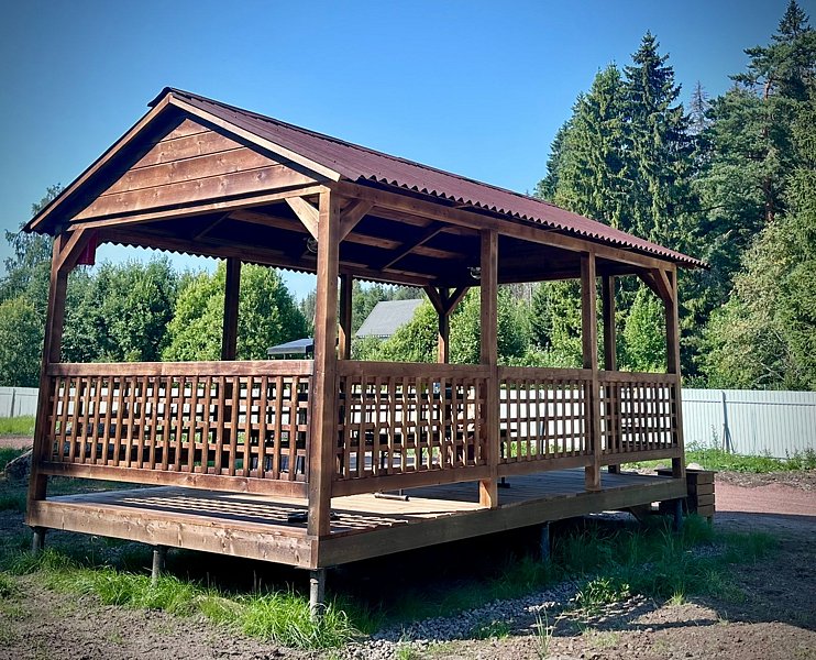 Беседка вместимостью до 20 человек. Стоимость: 5000 ₽ / 2 часа. Каждый последующий час — 1500 ₽.