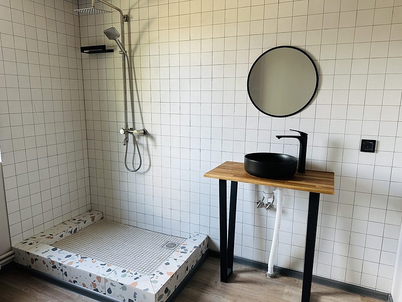 Удобства на этаже: 2 современных санузла с душевой и удобная кухонная зона.