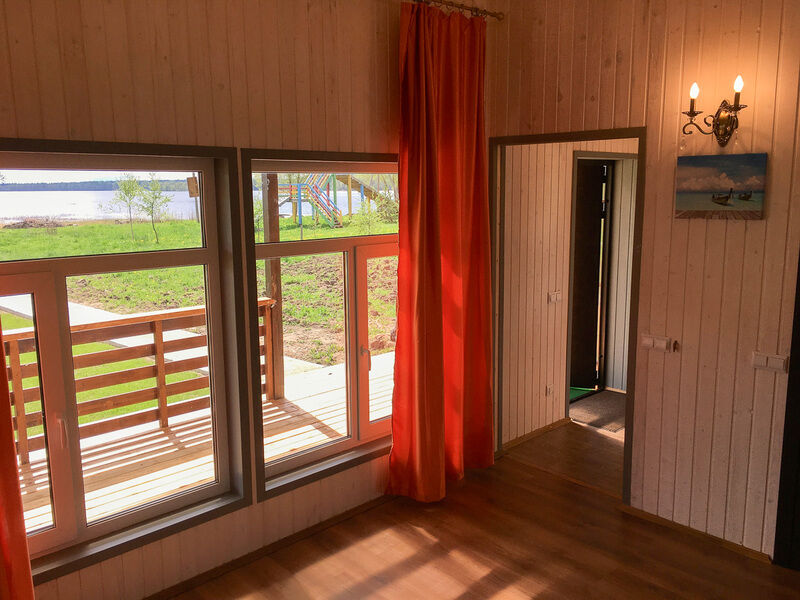 Коттедж на берегу озера до воды 20 м, обставлен стильной и современной мебелью. Для удобства гостей в доме: теплые полы, камин, спутниковое ТВ, DVD, караоке, современная кухня полностью укомплектованная посудой и всеми необходимыми приборами, холодильник и микроволновая печь. Своя баня на дровах. Индивидуальный паркинг. Рядом лес, песчаный пляж, пирс длиной 20 м, зона отдыха с мангалом, зимняя горка высотой 5 м, детская площадка, лодка, охрана, круглогодичный подъезд.