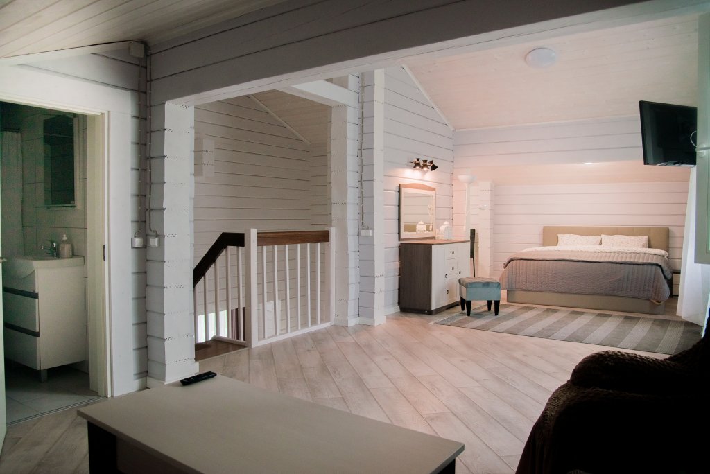 На закрытой территории расположены новые большие коттеджи из натурального бруса с сауной и камином. В каждом доме есть сауна, камин, отопление, тёплые полы, большие кровати, два отдельных санузла с душем, кабельное телевидение, высокоскоростной интернет. Гости могут не брать с собой много вещей: в кухне есть посуда и столовые приборы, в спальнях застелено постельное бельё, в душевых — полотенца для лица и тела. Для приготовления пищи установлена современная техника: духовой шкаф, индукционная плита, мультиварка, микроволновка и посудомоечная машина, холодильник. Около каждого дома установлен мангал, на террасе мягкая мебель. К услугам отдыхающих площадка для пикника и площадка для барбекю. Организуются экскурсии на снегоходах.