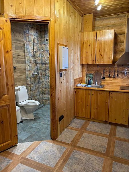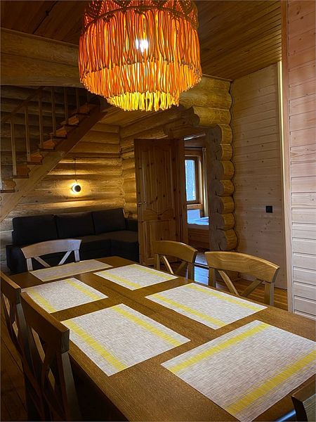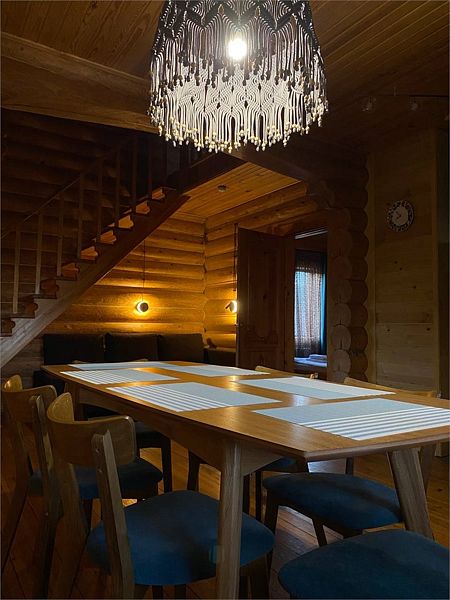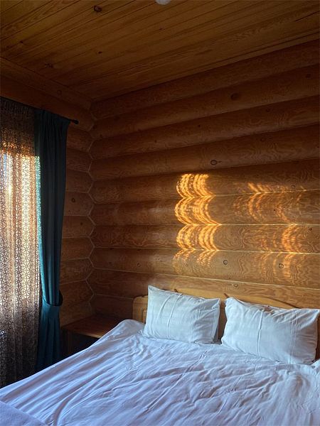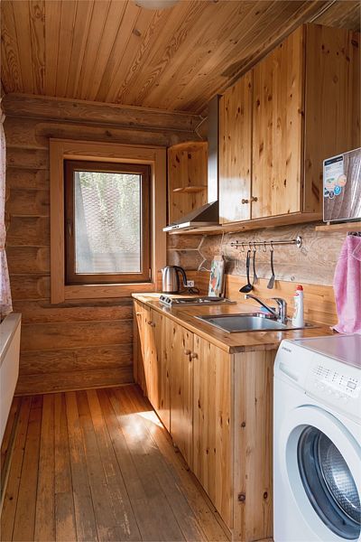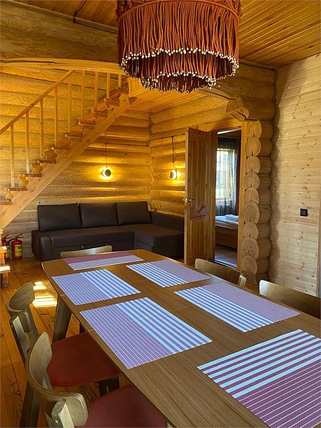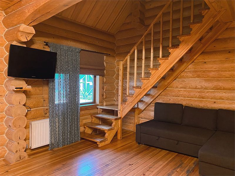 В апреле 2023 года в доме была проведена реновация. На первом этаже находятся обеденная зона, кухня, душевая, раскладной диван и спальня с двуспальной кроватью. Спальня с двумя односпальными кроватями находится на втором этаже, из нее можно выйти на балкон.