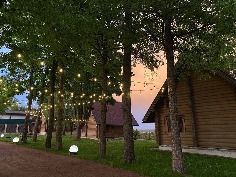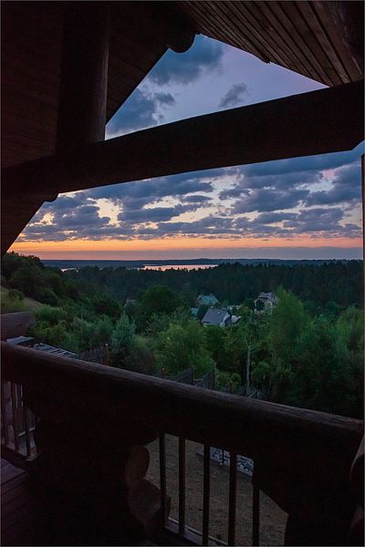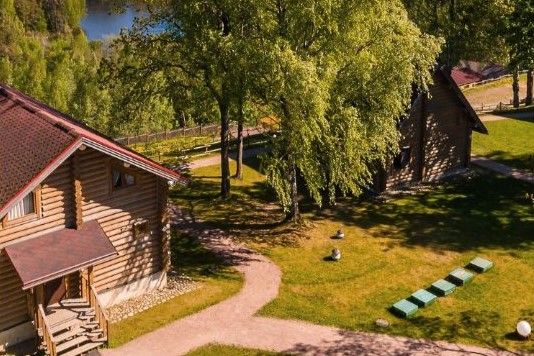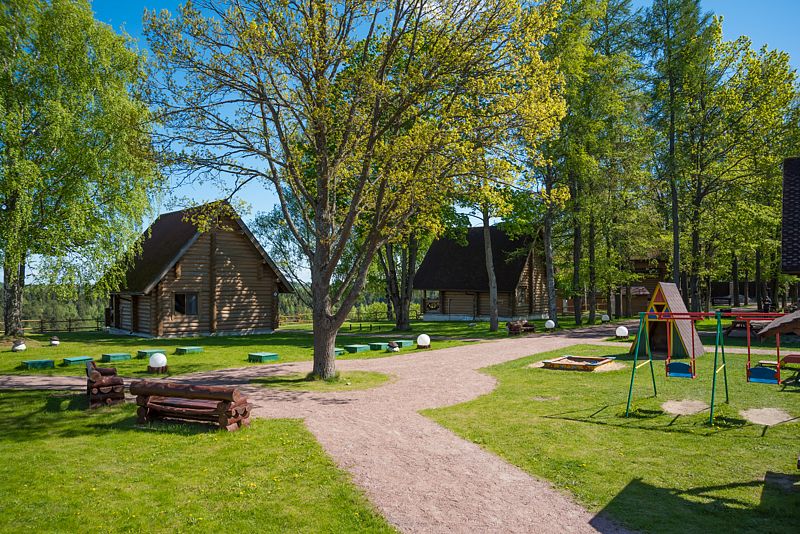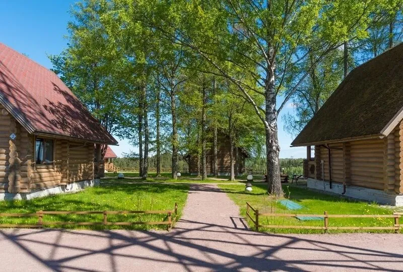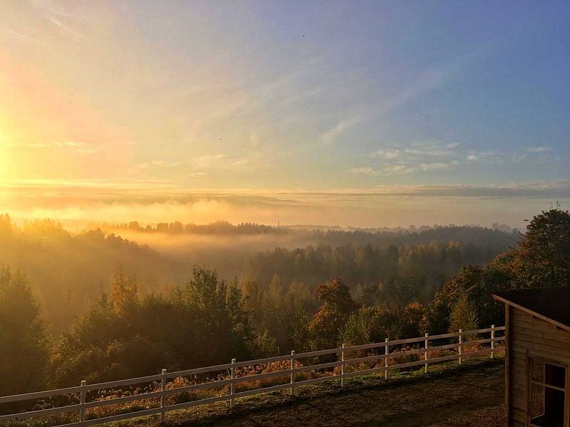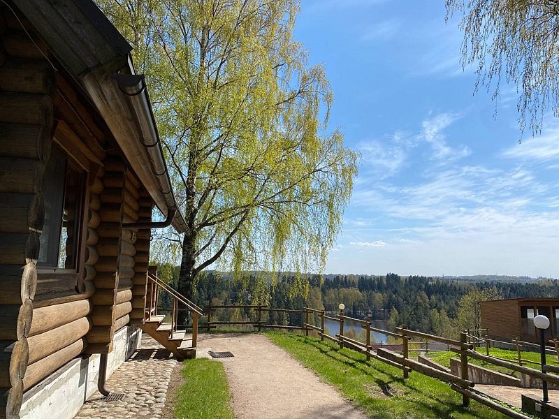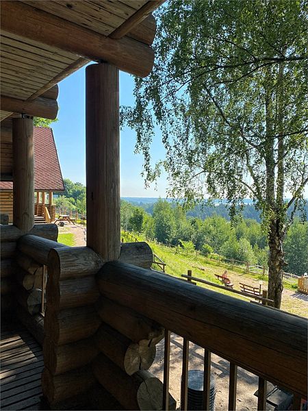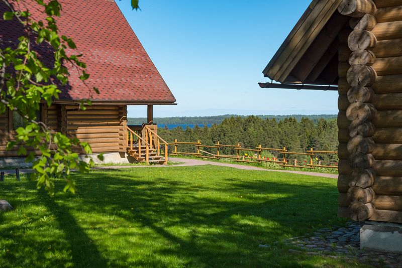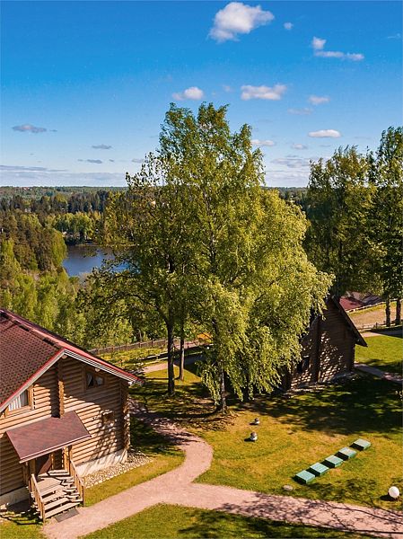 Усадьба находится на возвышенности и из домов первой линии открывается захватывающий вид на окрестности — озера, окруженные холмистым лесом. В пасмурную погоду и туман создается впечатление, что вы находитесь в горах