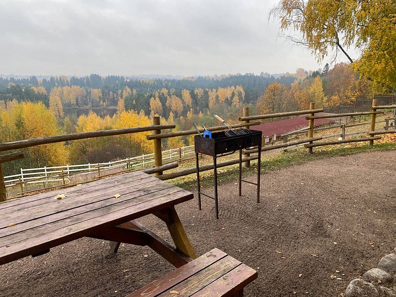 Усадьба находится на возвышенности и из домов первой линии открывается захватывающий вид на окрестности — озера, окруженные холмистым лесом. В пасмурную погоду и туман создается впечатление, что вы находитесь в горах.