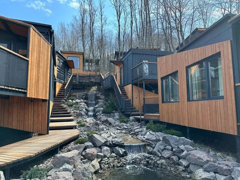 Двухкомнатный коттедж в стиле эко-минимализм возле живописного ручья.