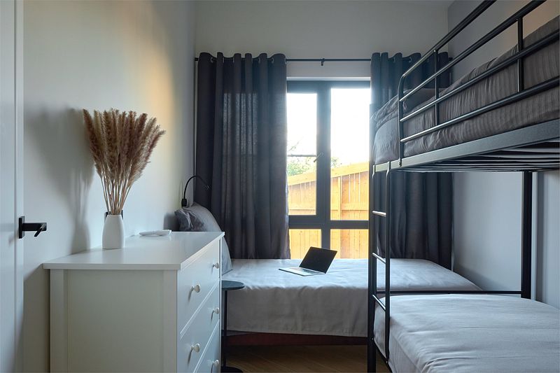 - Удобная двухъярусная кровать;