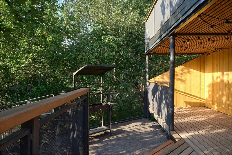 При создании проекта были сохранены лесные массивы. Для многолетних растений сделаны специальные вырезы в террасах коттеджей. Они помогают деревьям расти в естественной среде и быть безопасными для проживающих.