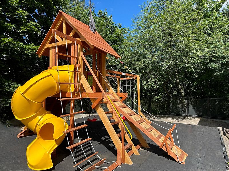 В парк-отеле расположена замечательная детская площадка, где малыши и дети среднего возраста могут непринуждённо развлекаться и весело проводить время. Важно отметить, что детям до 6 лет рекомендуется играть под внимательным надзором взрослых для обеспечения полной безопасности и комфорта.
