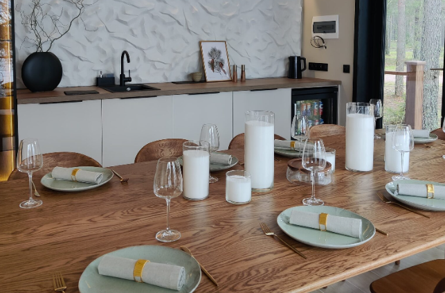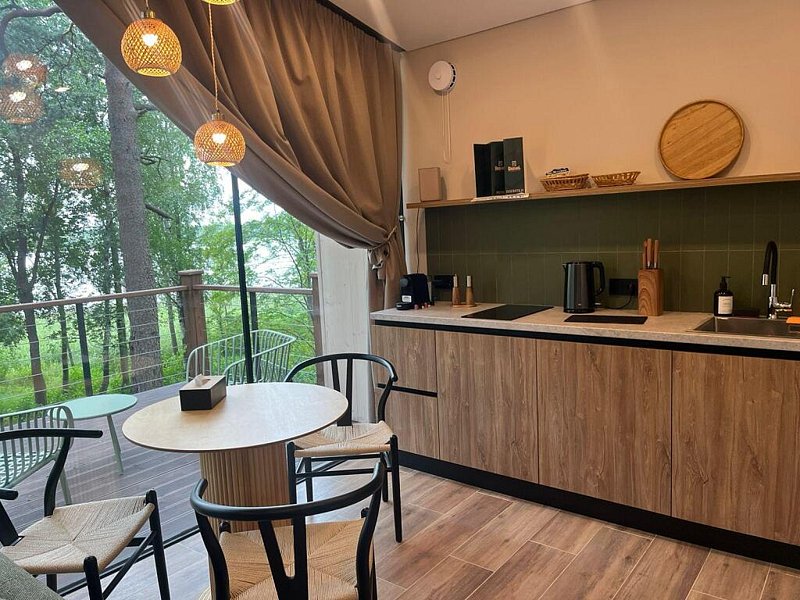 В коттедже есть все необходимое для комфортного проживания. Рядом, зона барбекю, где можно приготовить любимые блюда на огне и наcладиться ими на открытой террасе.