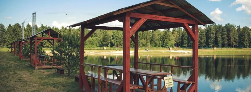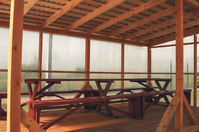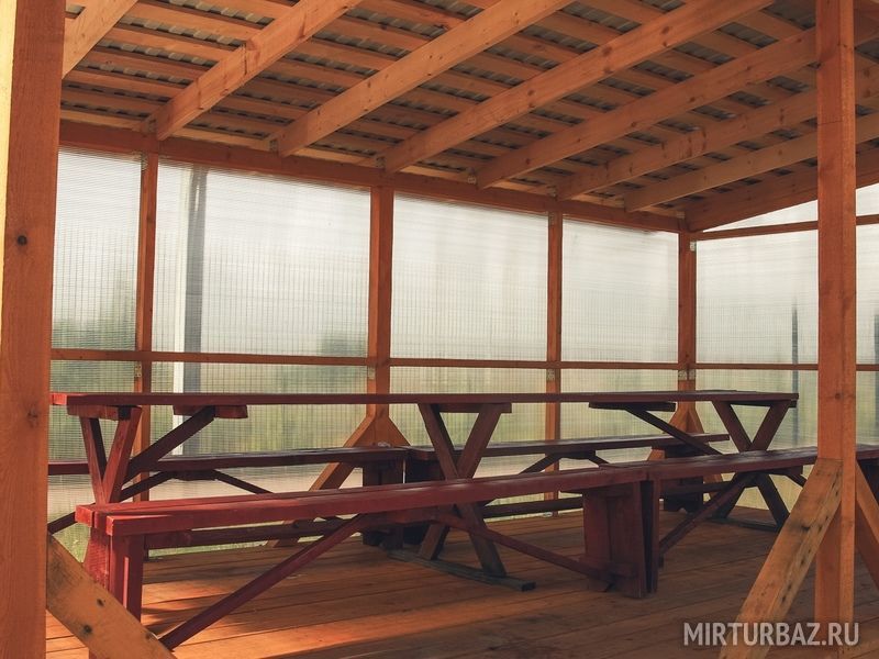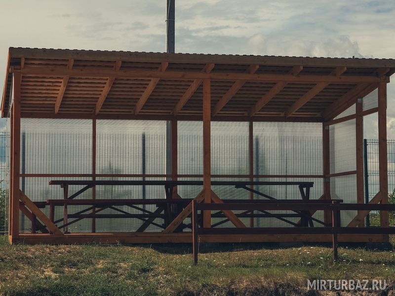 - Беседки открытые с мангалом: аренда открытой беседки 750 ₽/час + оплата входа на территорию базы с человека.