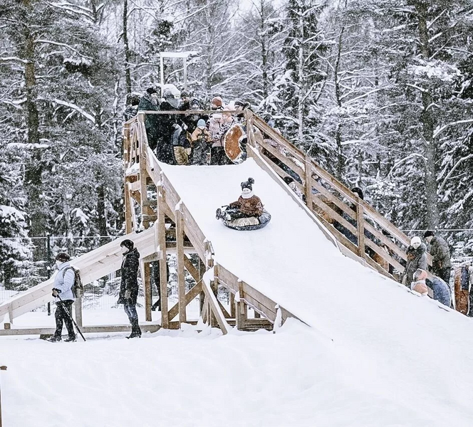 - С тюбингом и ватрушками