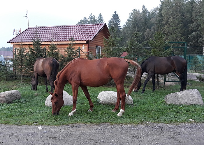 Читать полностьюНа базе отдыха есть небольшая конюшня, которую разместили на небольшом расстоянии от территории (дабы не смущать коней людским весельем). Гости, независимо от опыта могут заказать конную прогулку. Тренер посадит в седло любого. Кроме того вы будете избавлены от однообразной езды по манежу, вместо этого вы прокатитесь по лесу и получите незабываемые впечатления. Так же можно заказать свадебную или иную фотосессию с лошадьми.
