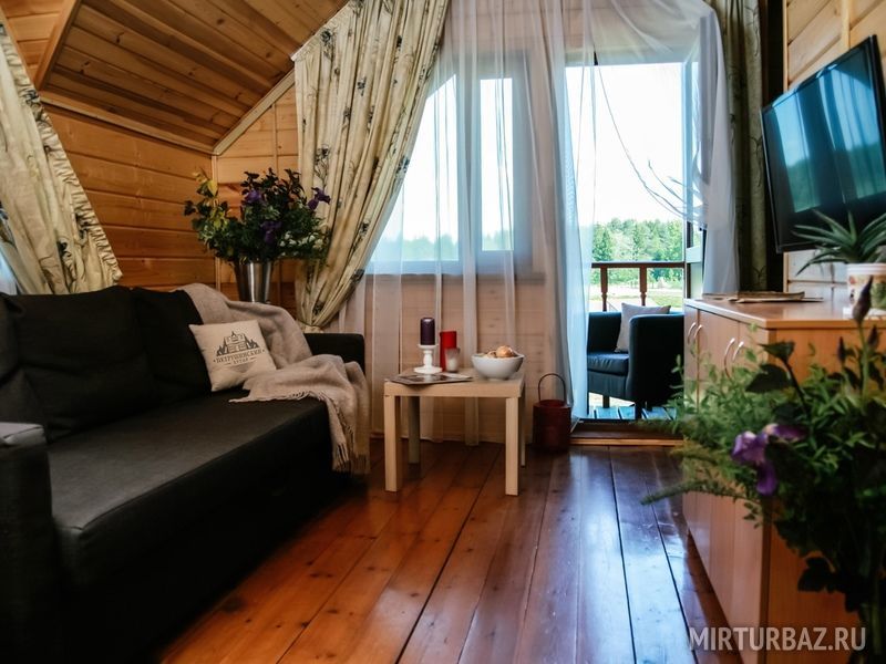 Полноценный номер в коттедже, рассчитанный на двоих, расположен на втором этаже и оборудован отдельным входом. В номере: прихожая, санузел с душевой кабиной, гостиная (ЖК-телевизор, шкаф для одежды, журнальный столик, кресло и диван), спальня с двумя отдельными кроватями и столиком, мини-кухня (холодильник, микроволновка, чайник), балкон.