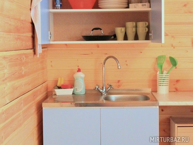Здесь есть мини-кухня, санузел, душевая кабина с холодной и горячей водой, телевизор, постельное бельё, электрический чайник.