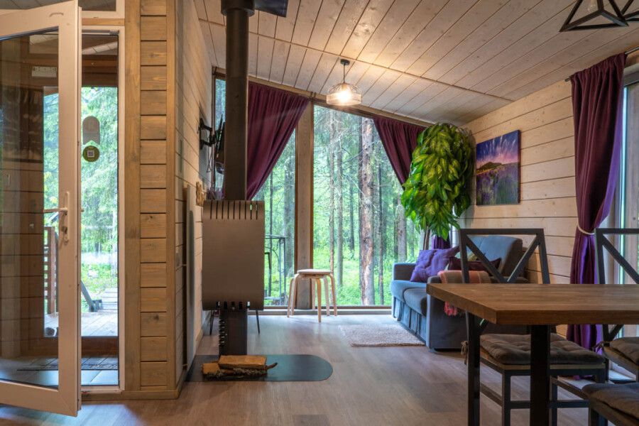 Инфраструктура: зона отдыха, душМинимальное время аренды: 3 часаНа территории расположены 2 бани с панорамными окнами на лес.