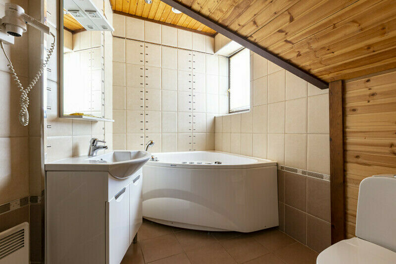 На первом этаже: оборудованная кухня с плитой и посудомоечной машиной, переходящая в просторную гостиную комнату; телевизор, одна спальная комната для двухместного размещения с раздельными кроватями, электрическая сауна, душевая, сан.узел.