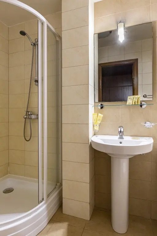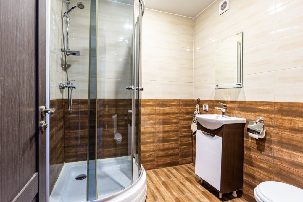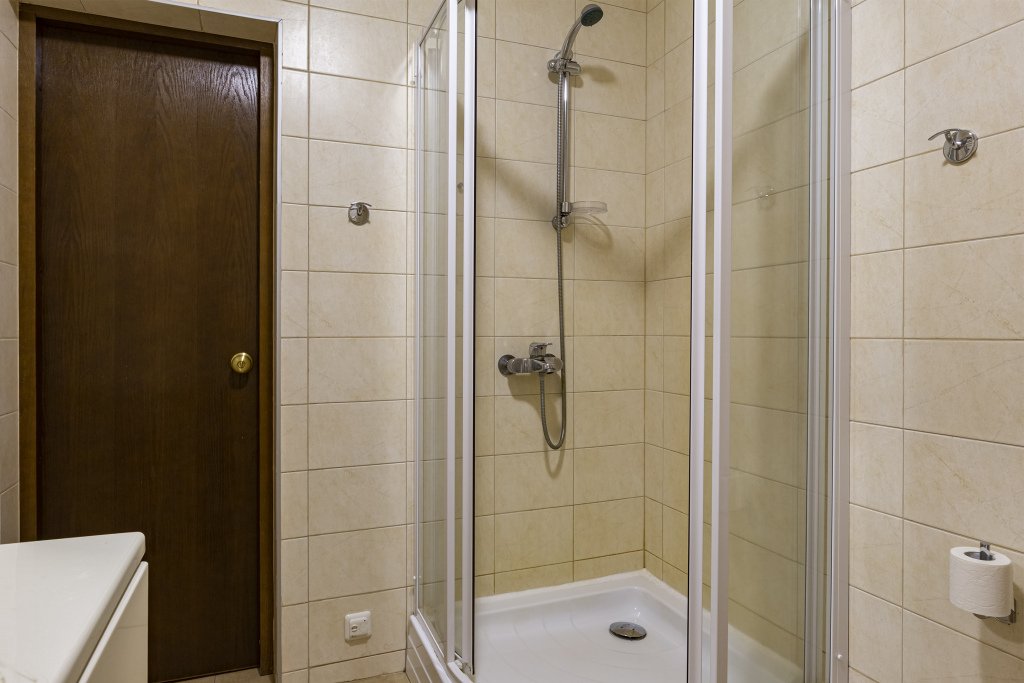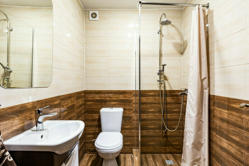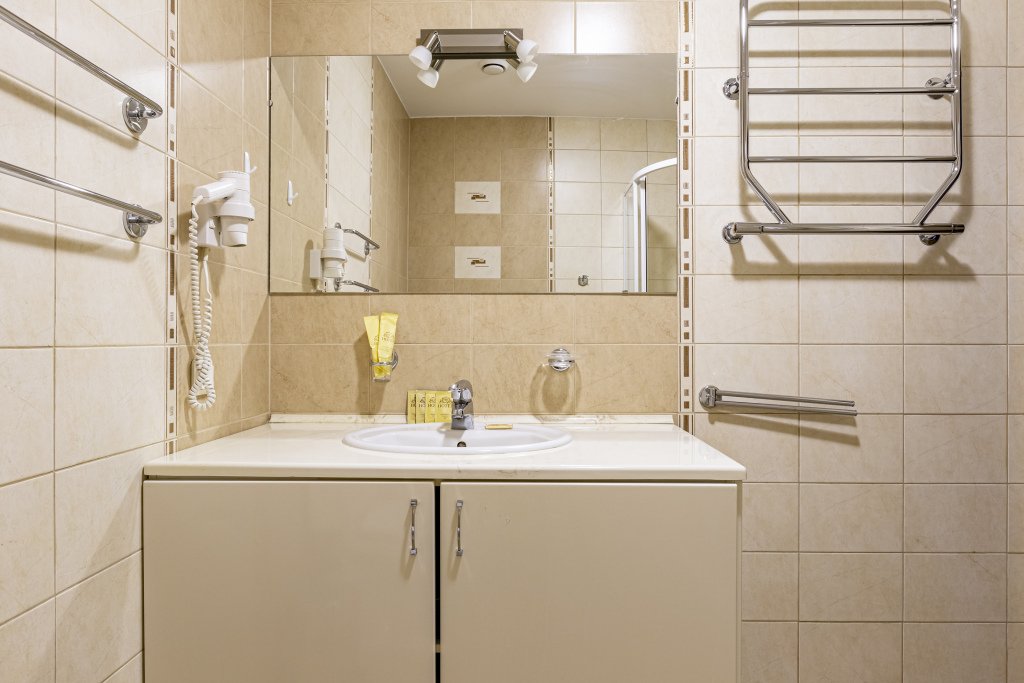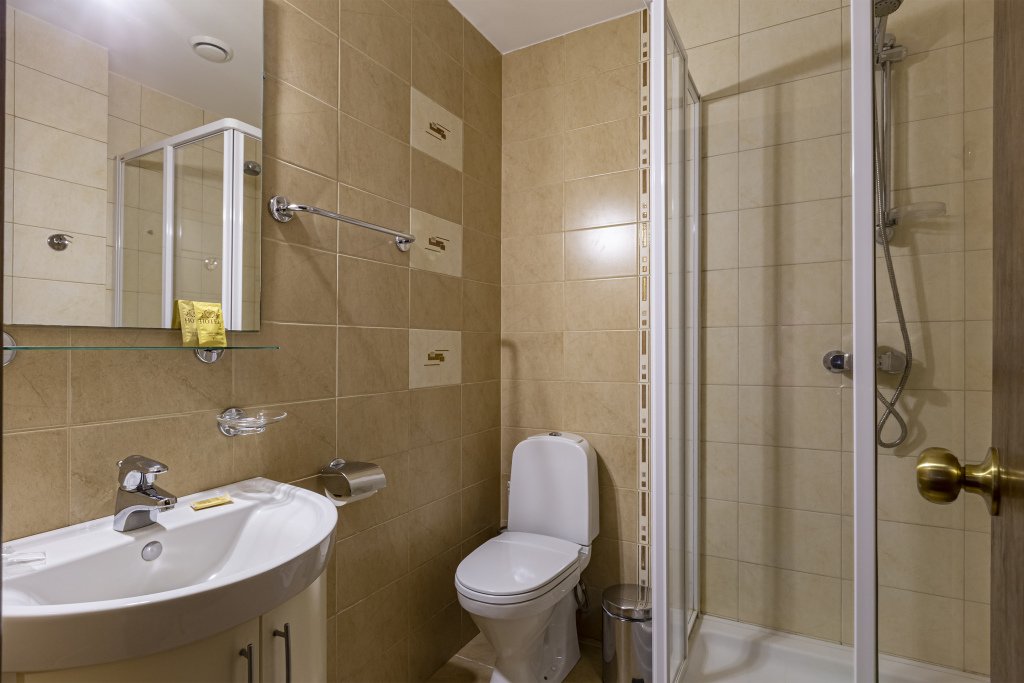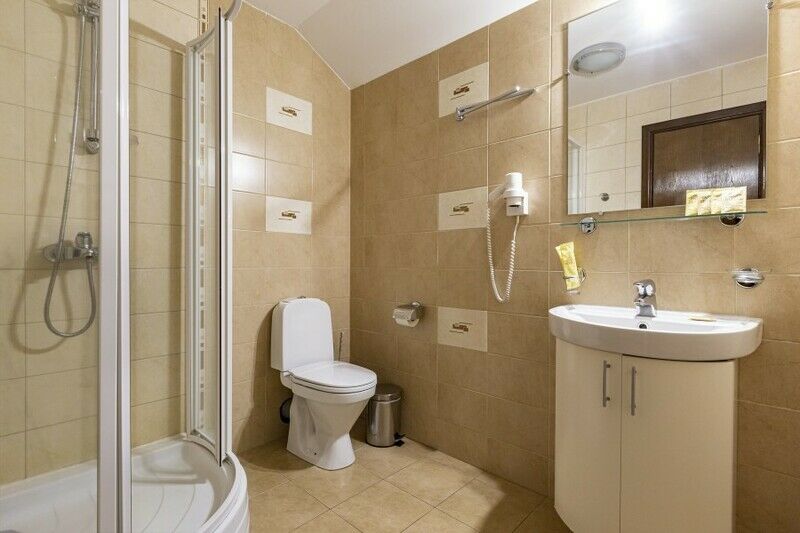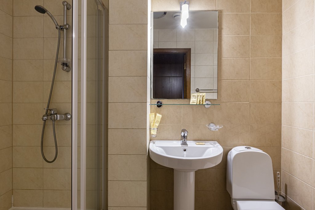 Ванная комната со всеми необходимыми туалетными принадлежностями оборудована душевой кабиной, туалетом, феном.