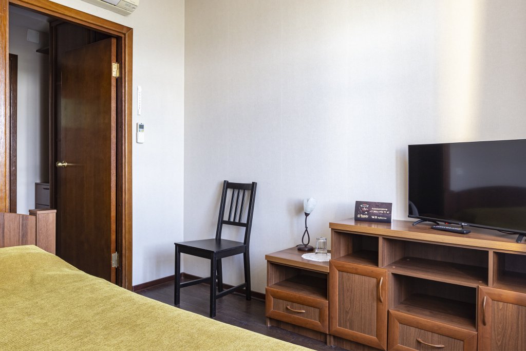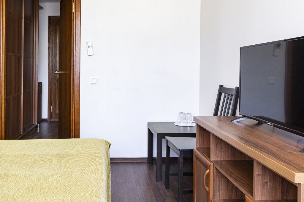 Двухместные номера обставлены современной и удобной мебелью, располагающей к полному расслаблению и отдыху. Все номера оснащены телевизором с программами спутникового телевидения, телефоном, Wi-Fi интернетом и кондиционером. В каждом номере установлен сейф.
