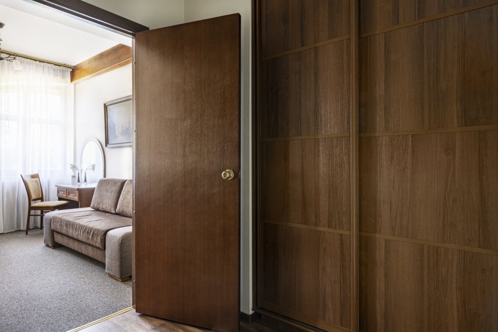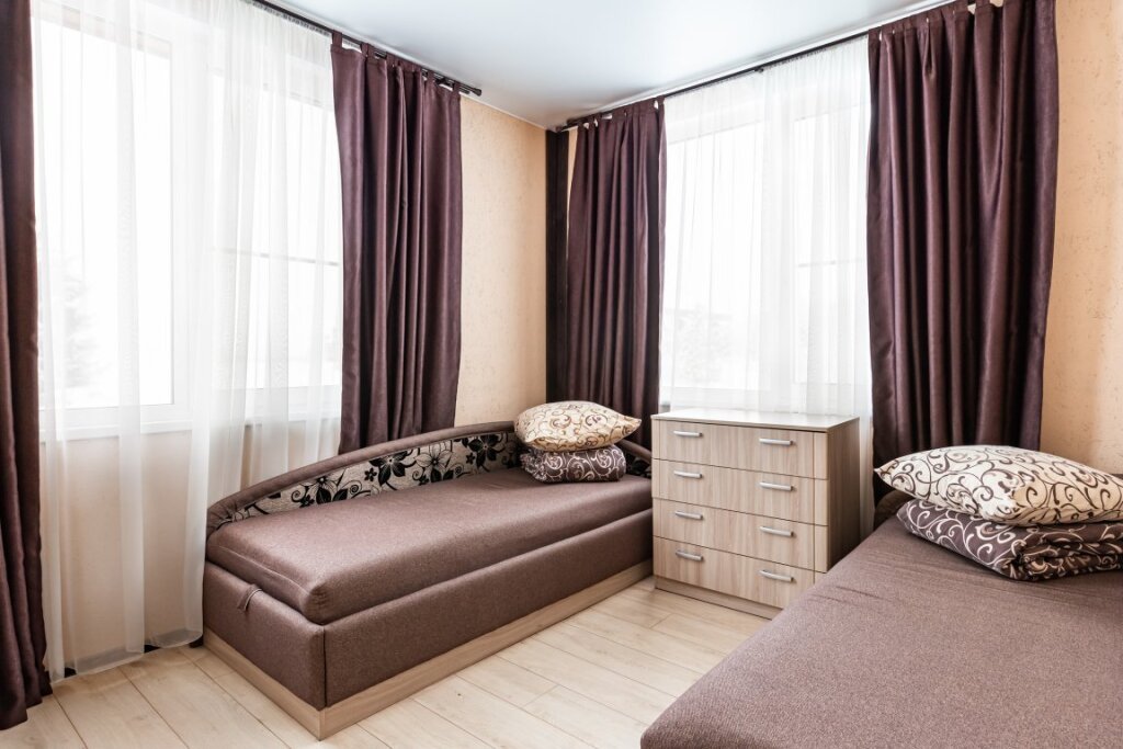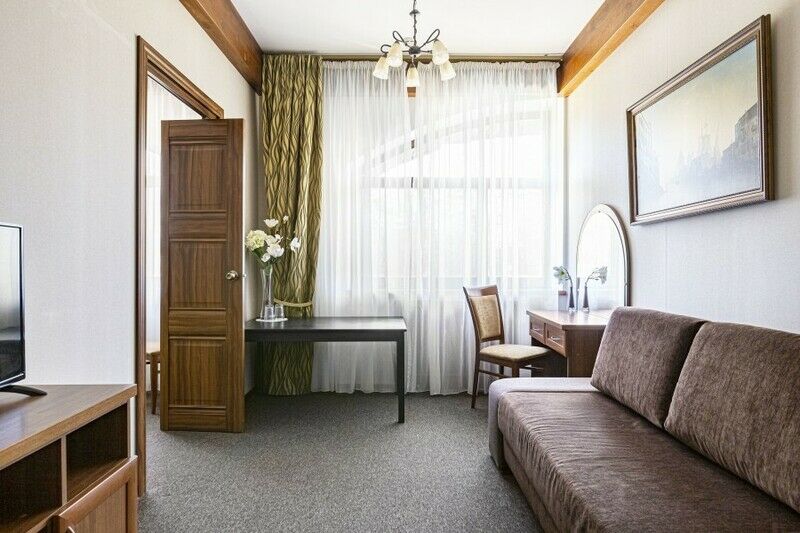 Семейным парам, приехавшим отдыхать с детьми, предлагается удобное и комфортное размещение в 2-х двухкомнатных семейных номерах, расположенных на втором этаже основного корпуса гостиницы. На окнах есть светозащитные шторы, которые позволят сладко спать даже в период белых ночей!