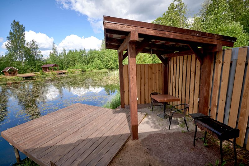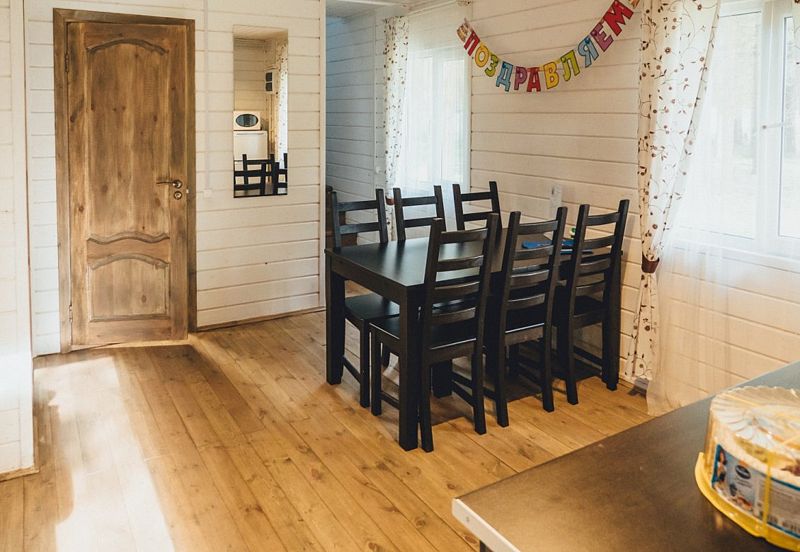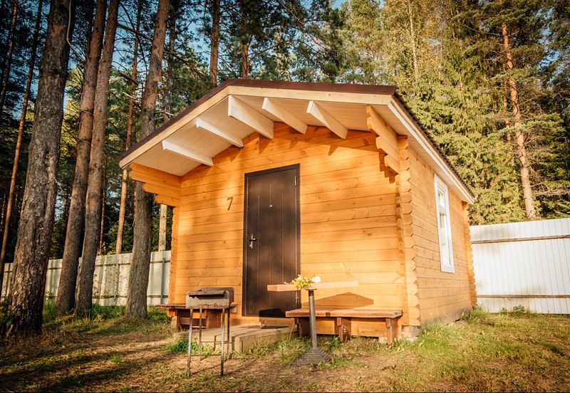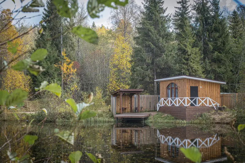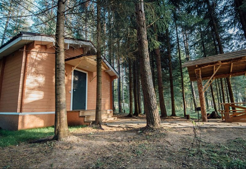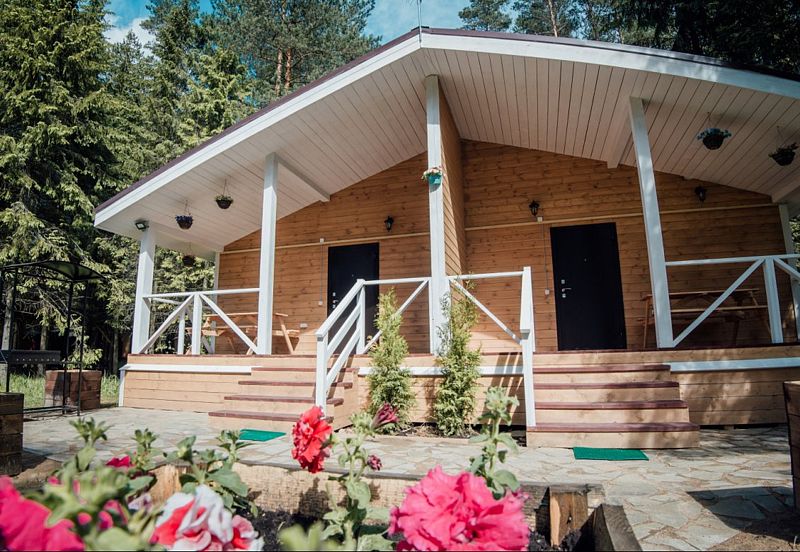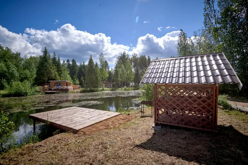 Семейный отдыхДостоинстваОтдыхали здесь в прошлом году В кафе хорошо кормят, есть русская баня, для празднования свадьбы или день рождения можно арендовать большой шатер. Работает прокат велосипедов и спортивного снаряжения. В домике есть туалет и душевая кабинка, телевизор, посуда и мини кухня.